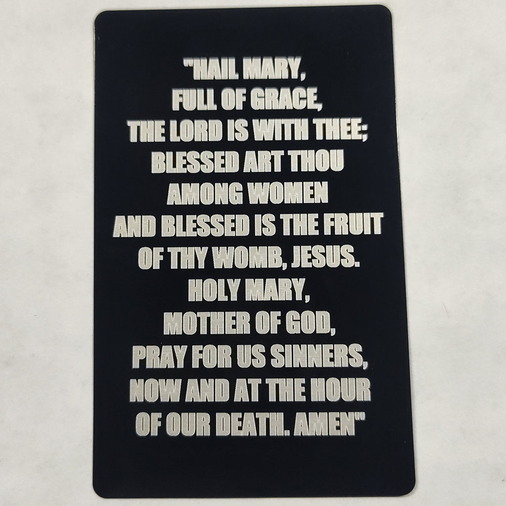 This listing is for " Hail Mary 1" a prayer to the virgin Mary, buying in bulk is cheaper than buying a single card and we do combined shipping. Each pack comes with a free card holder, please let us know what color you prefer